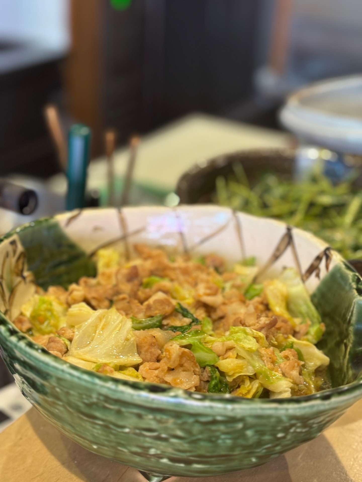 【日本酒とおばんざい】春きゃべつ 本日のおすすめは春キャベツを使った回鍋肉とムネ肉のガーリックカツです!もちろんどちらもお酒とご飯に合う安定の味付けをしております。春キャベツは甘味があり、そこに少し濃いめの味付けをした味噌…